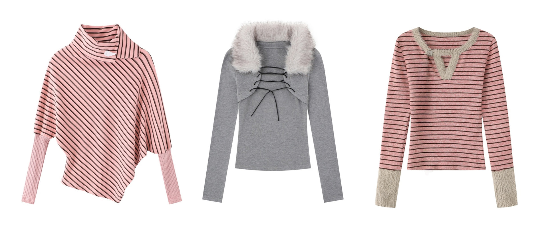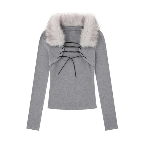 Faux-Fur Collar Design Gray Slim-Fit Long Sleeve